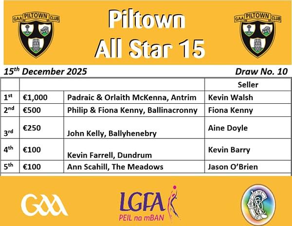 Congratulations 🎉 to all the winners of our December ALL STAR 15 fundraiser draw.
